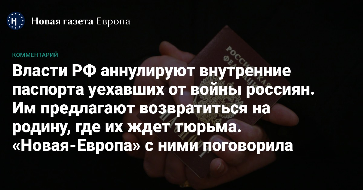 Власти РФ аннулируют внутренние паспорта уехавших от войны россиян. Им предлагают возвратиться на родину, где их ждет тюрьма. «Новая-Европа» с ними поговорила