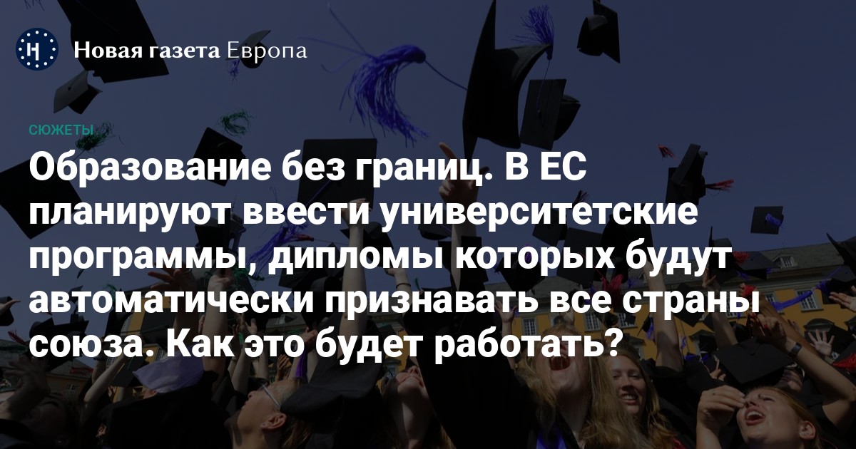 Чтобы решить эту проблему, в этом году ЕС начал разрабатывать новый тип образовательной квалификации — общеевропейскую степень. «Новая газета Европа» разобралась, какие преимущества и недостатки есть у этой программы, как она будет работать и когда ею можно будет воспользоваться.