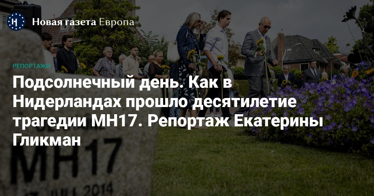 …Когда солнце уже не светит так ярко, а с ближайшей полосы «Схипхола» начинают снова взлетать самолеты, все расходятся. Головы подсолнухов смотрят на восток — в сторону аэропорта. И в сторону России. Где находятся ответы на вопросы, которые до сих пор мучают родственников убитых российской ракетой невинных людей.