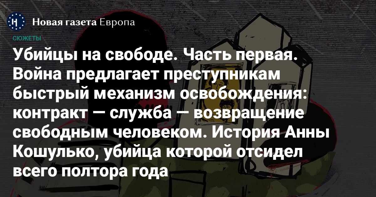 — Такие люди, они не меняются, — рассуждает другая подруга, Анастасия. — Он вернется [с фронта], начнет опять употреблять алкоголь, наркотики. Потом опять кого-то убьет, зверски изнасилует и снова поедет на СВО. А если не на СВО, то в тюрьму. Но он там уже как дома. Ему там лучше, чем здесь. Он не боится тюрьмы. Он не понес никакого наказания, никакого абсолютно ни физического, ни морального, ни материального. И при этом на данный момент он герой.