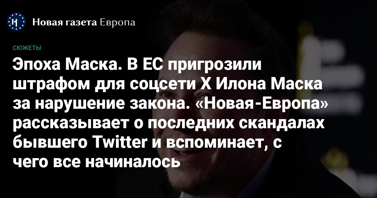 В ЕС пригрозили штрафом для соцсети X Илона Маска за нарушение закона. «Новая-Европа» рассказывает о последних скандалах бывшего Twitter и вспоминает, с чего все начиналось