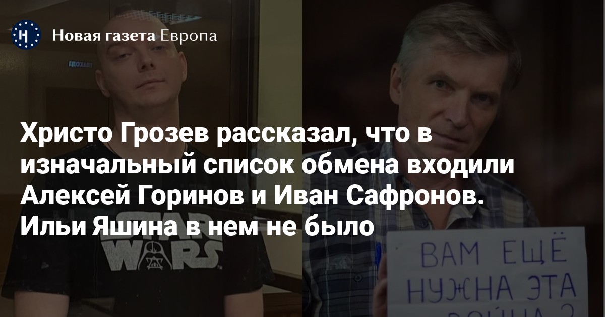 Он сообщил, что Иван Сафронов, осужденный в России на 22 года колонии по делу о «госизмене», фигурировал в первом обменном списке. Впоследствии российская сторона предложила заменить его на гражданина Германии, политолога Демури Воронина, которого приговорили к 13 годам заключения по тому же делу, утверждает Грозев.