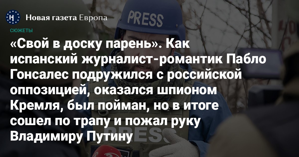 Как испанский журналист-романтик Пабло Гонсалес подружился с российской оппозицией, оказался шпионом Кремля, был пойман, но в итоге сошел по трапу и пожал руку Владимиру Путину