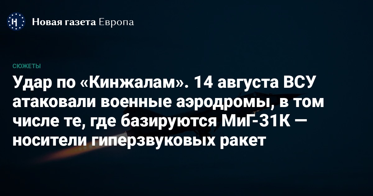 Ночью и утром 14 августа Вооруженные силы Украины устроили налеты беспилотников на три стратегических объекта российских ВКС: аэродром «Балтимор» в Воронеже, авиабазу в Борисоглебске на востоке Воронежской области и авиабазу «Саваслейка» в Нижегородской области. Эту информацию распространили российские телеграм-каналы. Позже появились и видеосвидетельства произошедшего.
