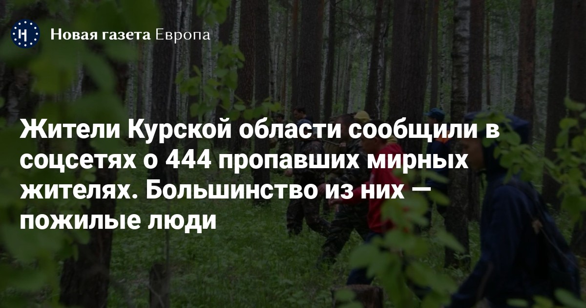 Каждый день в соцсетях жители размещают десятки объявлений с просьбой помочь найти родственников. «Новая-Европа» изучила эти сообщения и выяснила, что без вести пропали не меньше 444 человек. Эта оценка — нижняя граница, поскольку не все люди пишут о пропаже родственников в соцсетях. 14 августа пресс-служба регионального правительства «настоятельно не рекомендовала» жителям Курской области публиковать данные о пропавших близких в соцсетях.
