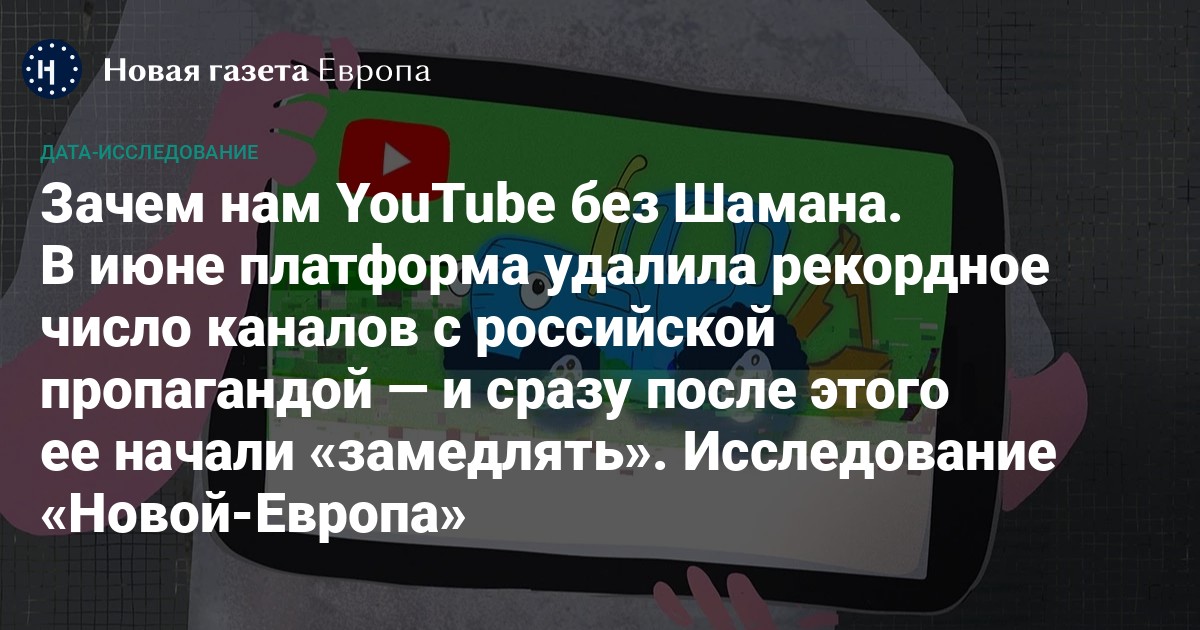 В июне платформа удалила рекордное число каналов с российской пропагандой — и сразу после этого ее начали «замедлять». Исследование «Новой-Европа»