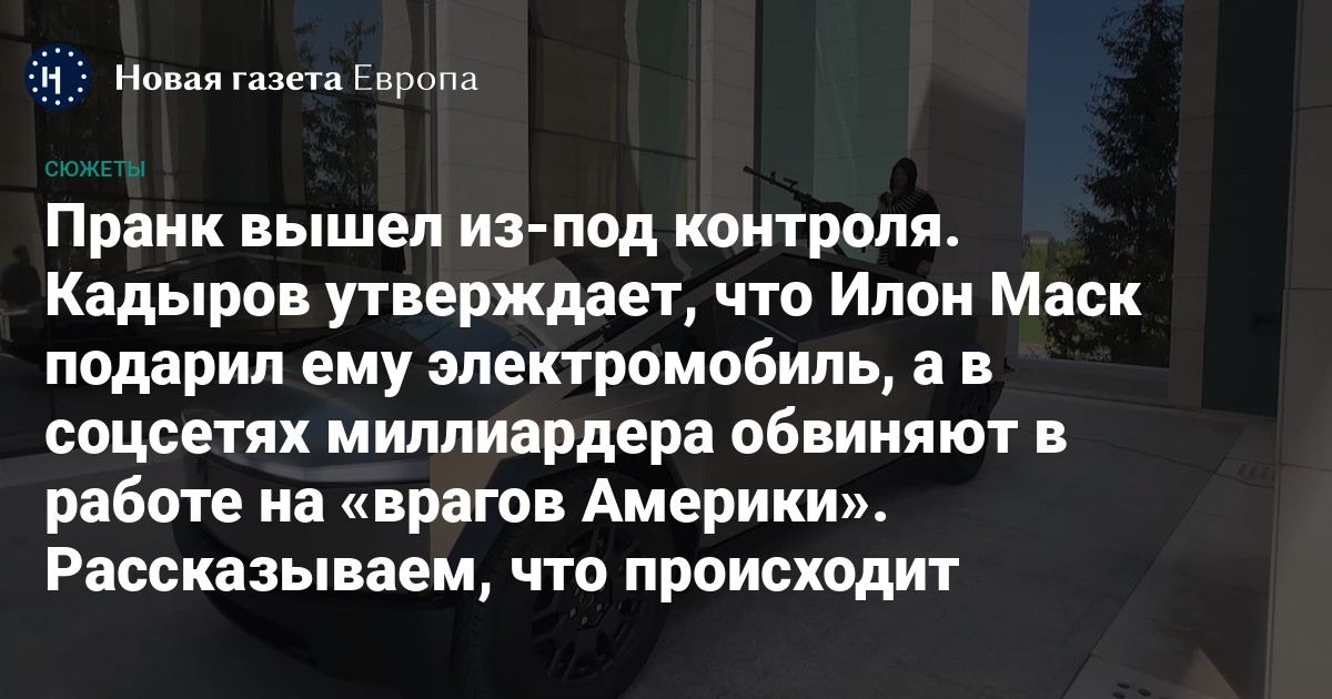 Заявление Кадырова о том, что «Теслу» ему подарил лично Илон Маск, очевидно, мистификация. И он далеко не первый авторитарный лидер, который пытается похвастаться тем, что Маск будто бы дарит ему персональные подарки. Еще в 2019 году Александр Лукашенко, выступая перед школьниками, заявил, будто Маск подарил ему электромобиль, но не уточнил, какой и при каких обстоятельствах. Вероятно, речь шла о «Tesla Model S», который Лукашенко тестировал еще в 2017 году. Тогда же он утверждал, что машину ему прислала непосредственно компания-производитель. Маск при этом отрицал, что передал авто Лукашенко.