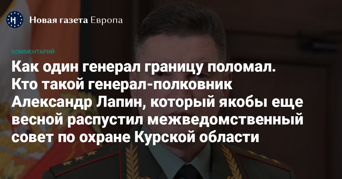 Источник The Wall Street Journal в российских спецслужбах рассказал, что за несколько месяцев до начала наступления ВСУ на Курскую область весной 2024 года генерал-полковник Александр Лапин распустил межведомственный совет по охране региона. Это решение могло создать брешь в российской обороне. Что известно о генерале Лапине, не раз становившемся мишенью для критики?