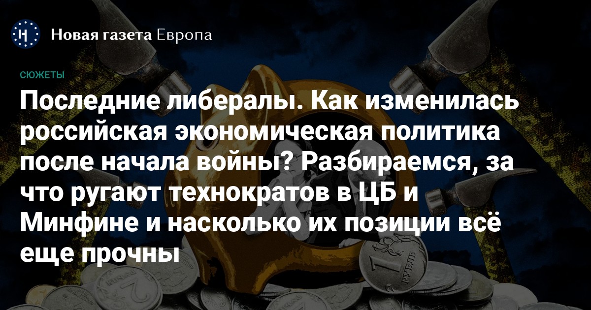 Парадокс в том, что экономикой агрессивной войны продолжают управлять наследники так называемых «либералов» — Егора Гайдара, Анатолия Чубайса и Алексея Кудрина. Жесткие монетарные методы — это именно их взгляды. С одной стороны, в правительстве сейчас один из самых профессиональных экономических блоков в мире. В то же время эта политика позволяет Кремлю продолжать войну в Украине.