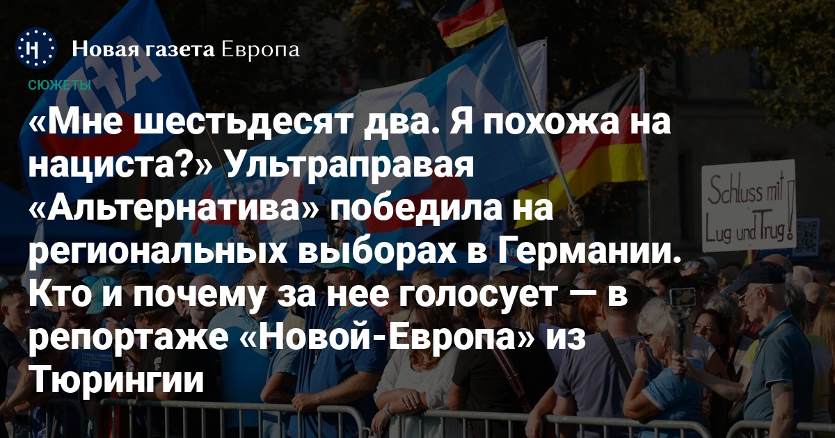 Ультраправая «Альтернатива» победила на региональных выборах в Германии. Кто и почему за нее голосует — в репортаже «Новой-Европа» из Тюрингии