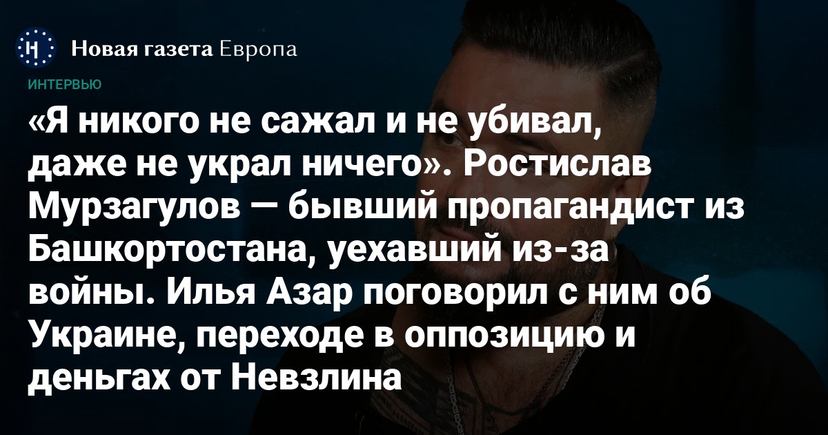 Ростислав Мурзагулов — бывший пропагандист из Башкортостана, уехавший из-за войны. Илья Азар поговорил с ним об Украине, переходе в оппозицию и деньгах от Невзлина