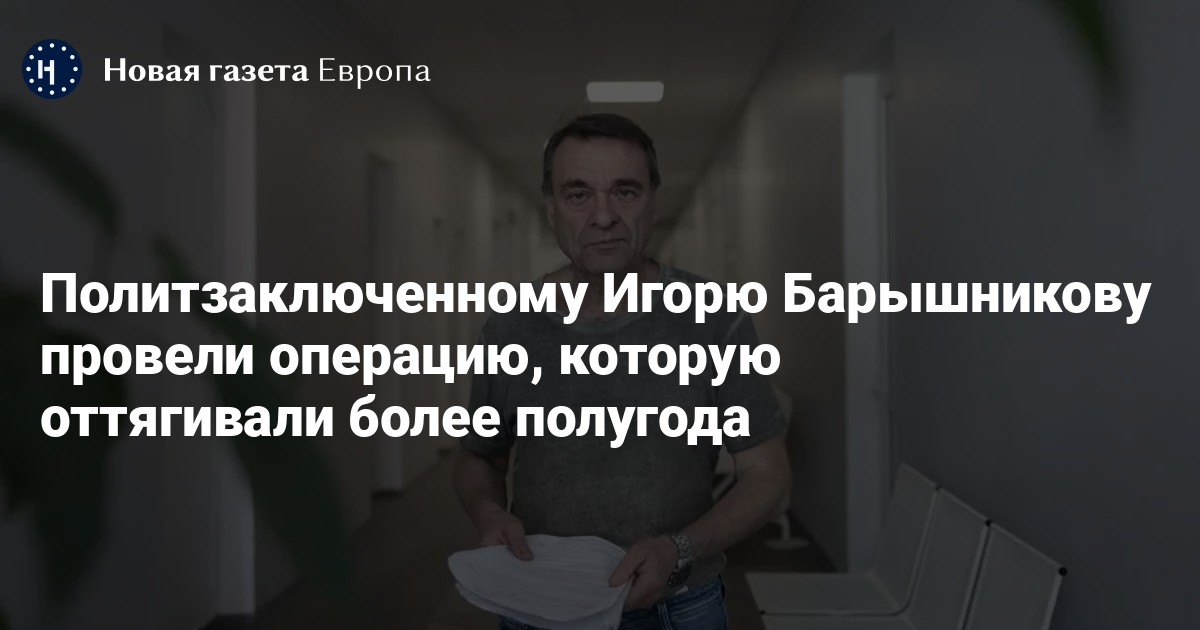 Политзаключенному Игорю Барышникову провели операцию, которую оттягивали более полугода