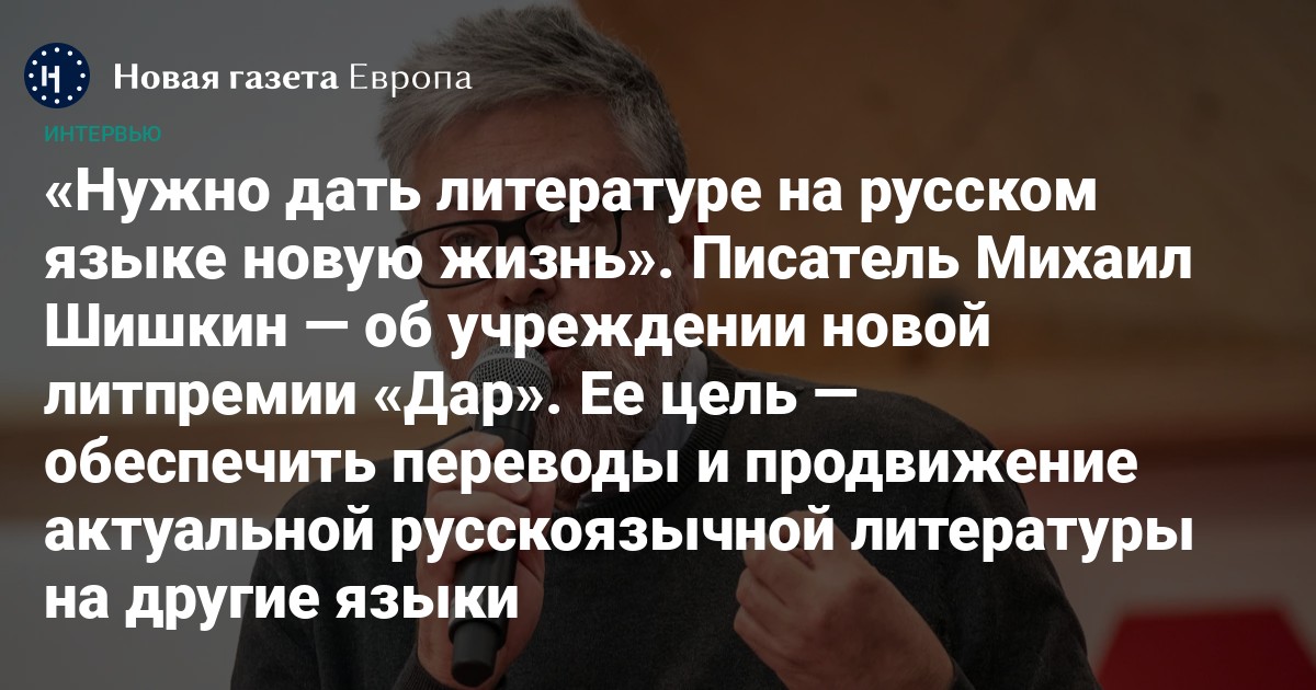 — Вы прекрасно видите, какое теперь настороженное и сложное отношение ко всему русскому в мире. Нужно дать литературе на русском языке новую жизнь. Особенно это важно для молодых: нужно дать им шанс быть увиденными, прочитанными и — если тексты достойные — переведенными. У писателей с именами всё еще как-то по инерции происходит, а для молодых выход на переводы практически закрыт. Западные издательства не хотят брать неизвестные имена, не хотят покупать кота в мешке и тратить большие деньги на переводы. Раньше выходило огромное количество переводов с русского, потому что издатели получали гранты из Москвы. Теперь это закончилось. Собственно премией являются гранты на переводы на английский, немецкий и французский. Особенно важно для западных коллег новое понимание, что нет «русских писателей». По-русски пишут писатели из Украины, Беларуси, Литвы и так далее по всему миру. Об этом заявлено в Декларации об учреждении. Актуальный дискурс о «постимперскости» и «деколонизации» литературы необходимо перевести в практическую деятельность — премия дает одну из возможностей перейти от слов к делу. Сейчас время создания нового типа русскоязычной культуры, свободной от «проклятия территории» и от русского «патриотизма», и осознающей себя частью мировой культуры. Премия — один из инструментов для этой работы.