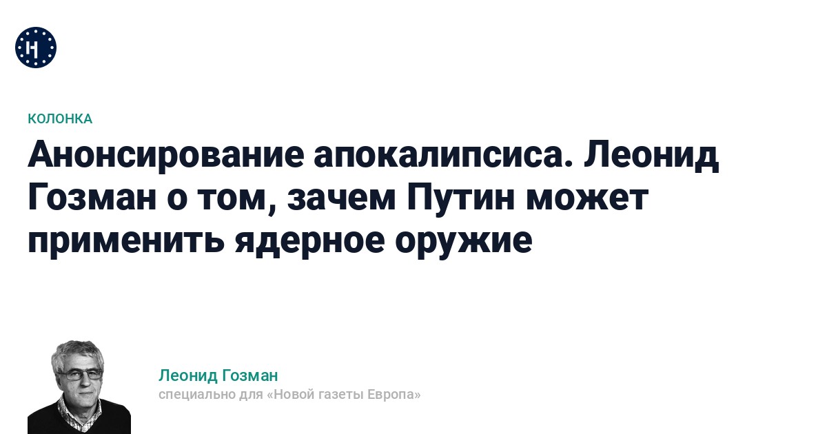 Но сейчас на исходе первой четверти двадцать первого века Владимир Путин объявляет новую ядерную доктрину. Судя по его словам, Россия теперь считает себя вправе применить ядерное оружие фактически в любой момент, когда захочет; это обеспечивают туманные и дающие возможность для самых различных интерпретаций формулировки анонсированных новаций. Во всяком случае, по Украине ударить можно: она же на нас напала и сделала это с помощью ядерных держав.