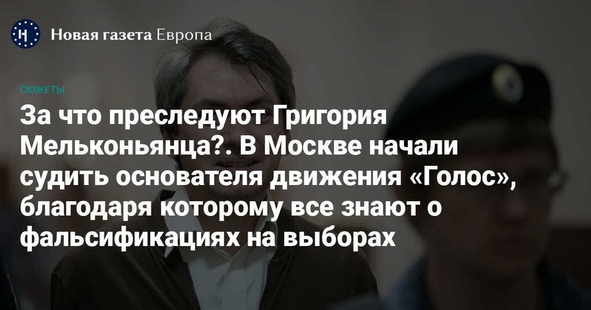 Сам Мельконьянц отказался признать вину в суде и заявил, что суть обвинения ему непонятна. Он находится под стражей уже больше года. Его адвокат ранее заявлял, что следствие нарушило предельные сроки содержания под стражей и по закону Мельконьянца должны были освободить из СИЗО или избрать иную меру пресечения. Однако возражения защиты не были учтены, и в середине августа суд продлил ему срок ареста до октября. «Новая-Европа» напоминает хронологию преследования сопредседателя «Голоса».