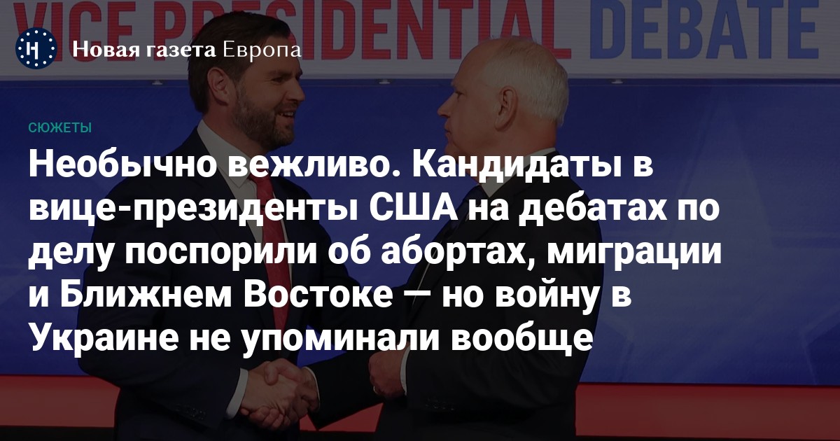 Кандидаты в вице-президенты США на дебатах по делу поспорили об абортах, миграции и Ближнем Востоке — но войну в Украине не упоминали вообще