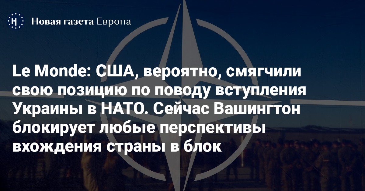 Le Monde: США, вероятно, смягчили свою позицию по поводу вступления Украины в НАТО. Сейчас Вашингтон блокирует любые перспективы вхождения страны в блок