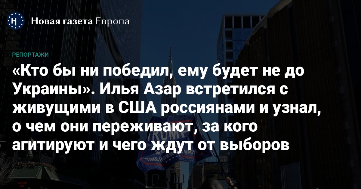 Специальный корреспондент «Новой газеты Европа» Илья Азар пообщался с российскими жителями Вашингтона и Нью-Йорка, чтобы понять, чего они ждут от предстоящих выборов.