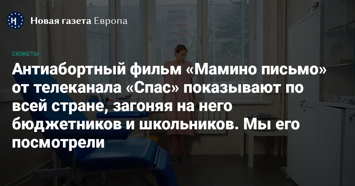 На волне антиабортной кампании телеканал «СПАС» выпустил фильм «Мамино письмо». Продюсерами выступили Борис Корчевников и Андрей Феофанов, режиссером — Александр Сукачев, сын Гарика Сукачева. На фильм отправляют школьников, студентов, врачей и педагогов.