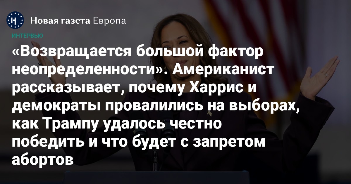 — Мне кажется, она выглядела убедительно по другой большой теме, которая обсуждалась на этой предвыборной кампании. Это тема абортов. Потому что здесь как раз у Трампа были действительно серьезные проблемы, особенно когда он сказал, что женщин нужно наказывать за то, что они делают аборты. Камала даже целый ролик с этим фрагментом его речи сделала, где рассказывала, что мужчины не могут решать, что женщины могут делать со своим телом. Вот на этой теме, мне кажется, она достаточно убедительно вышла, но, как выясняется, недостаточно для победы.