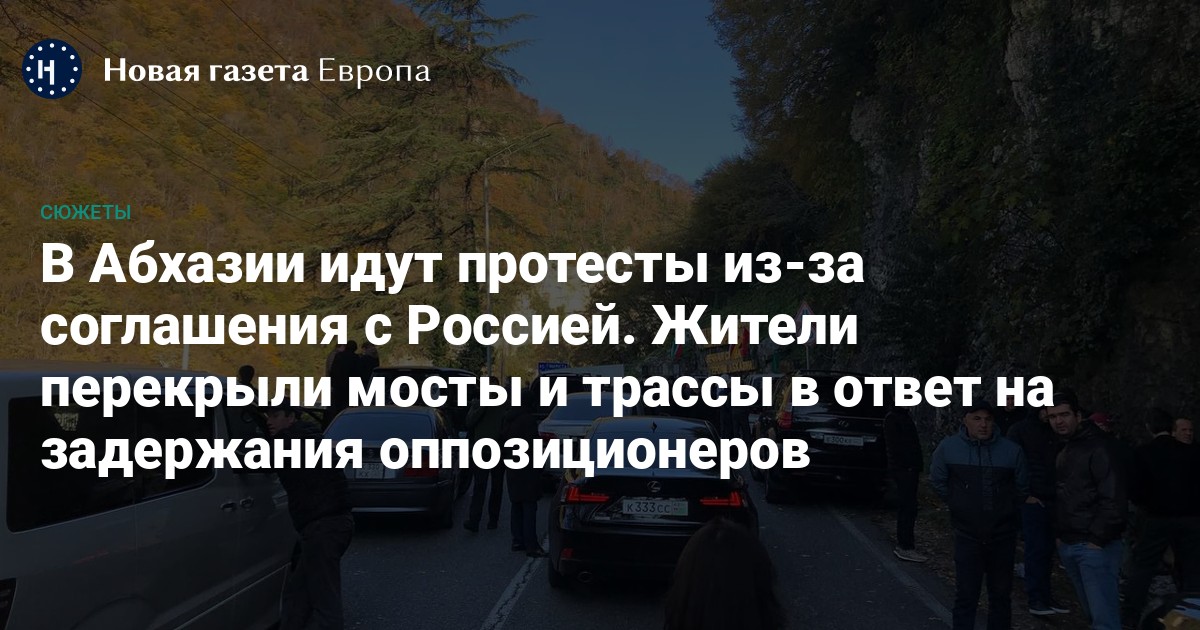 11 ноября в Абхазии задержали пять оппозиционеров, выступивших против соглашения с Россией о запуске инвестиционных проектов в непризнанной республике. В ответ местные жители собрались у здания Службы госбезопасности и потребовали их освобождения. Столкновения с полицией обернулись новыми задержаниями, а также блокировкой трасс и мостов протестующими.