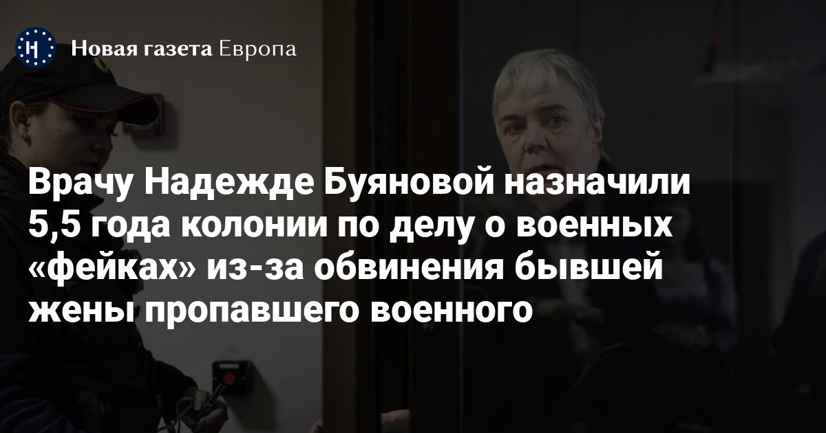 Врачу Надежде Буяновой назначили 5,5 года колонии по делу о военных «фейках» из-за обвинения бывшей жены пропавшего военного