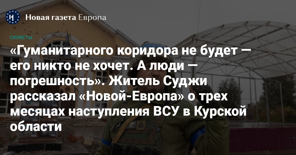 Это понимают сейчас абсолютно все, кто еще находится в Судже. До нас доходили слухи, что те, кто отсюда уехал дальше в Россию, но у кого здесь остались родственники, требуют у России и Украины предоставить гуманитарный коридор и вывезти из зоны боевых действий гражданских лиц. Но в Судже никто не верит, что такой коридор возможен. С одной стороны некоторые украинские военные прямо говорят: «Ну кто вас отсюда перед наступлением отпустит? Если вы хотя бы парочку наших позиций увидели и сообщите об этом российским военным, то, значит, на эти позиции сразу начнут снаряды и ракеты падать. А нам это надо? Ближе к границе уходите, никто вам не мешает, а в Россию не выпустим».