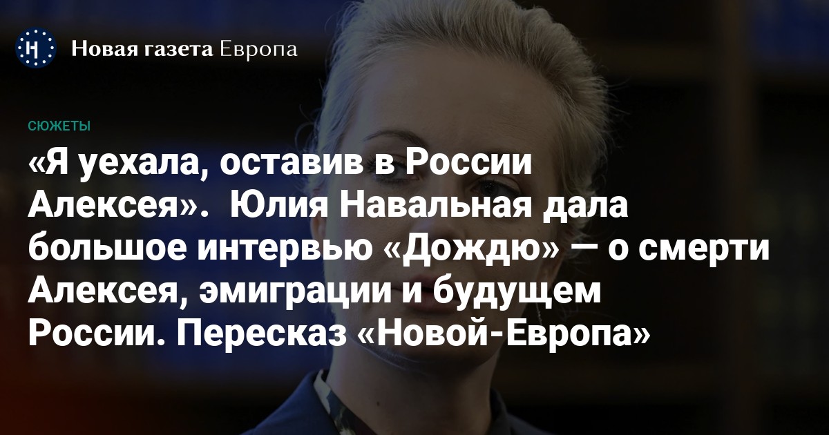 Юлия Навальная дала большое интервью «Дождю» — о смерти Алексея, эмиграции и будущем России. Пересказ «Новой-Европа»