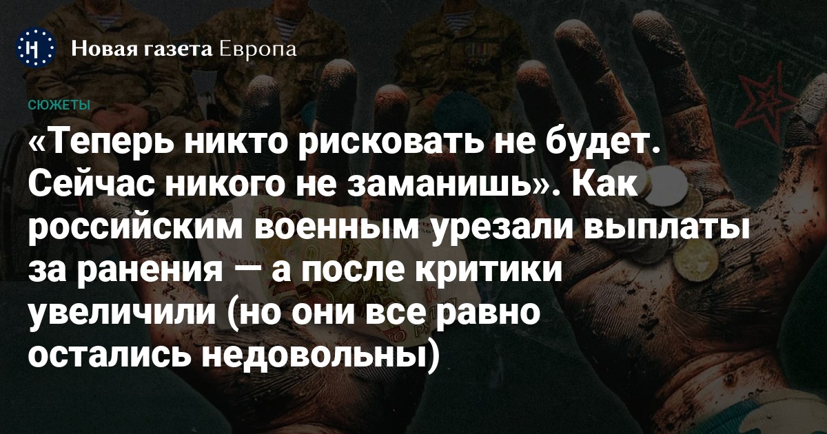 Решение Кремля спровоцировало ожесточенную критику в военных чатах и Z-каналах. Как результат, 14 ноября замминистра обороны РФ Анна Цивилева объявила о повышении выплат за тяжелые ранения до четырех миллионов рублей. «Новая газета Европа» изучила, как военнослужащие реагируют на эти изменения.
