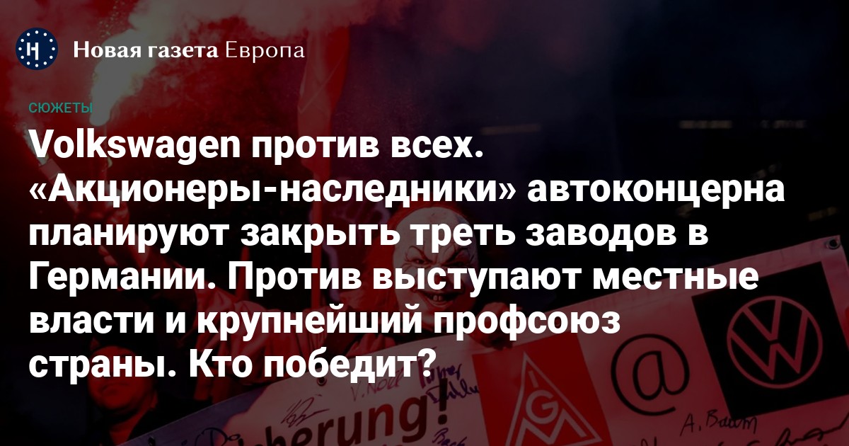 Этой осенью стало известно о том, что крупнейший автопроизводитель Европы Volkswagen Group может закрыть несколько своих заводов в Германии. К ноябрю слухи подтвердились: под угрозой как минимум три объекта. Кроме того, концерн планирует массовые сокращения зарплат и отмену ряда льгот для работников. Всё это ударит по 120 тысячам немцев и по экономике сразу нескольких федеральных земель.