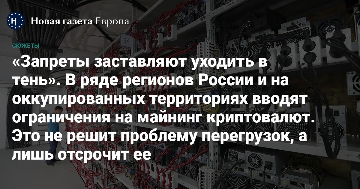 С 1 декабря 2024 года в России вводятся ограничения на майнинг криптовалют. В некоторых регионах это полный запрет до 2031 года, в других — сезонные ограничения. Формально закон направлен на снижение нагрузки на энергосистему, но представители отрасли считают, что он скорее вредит, чем помогает. «Новая-Европа» разбиралась в ситуации.
