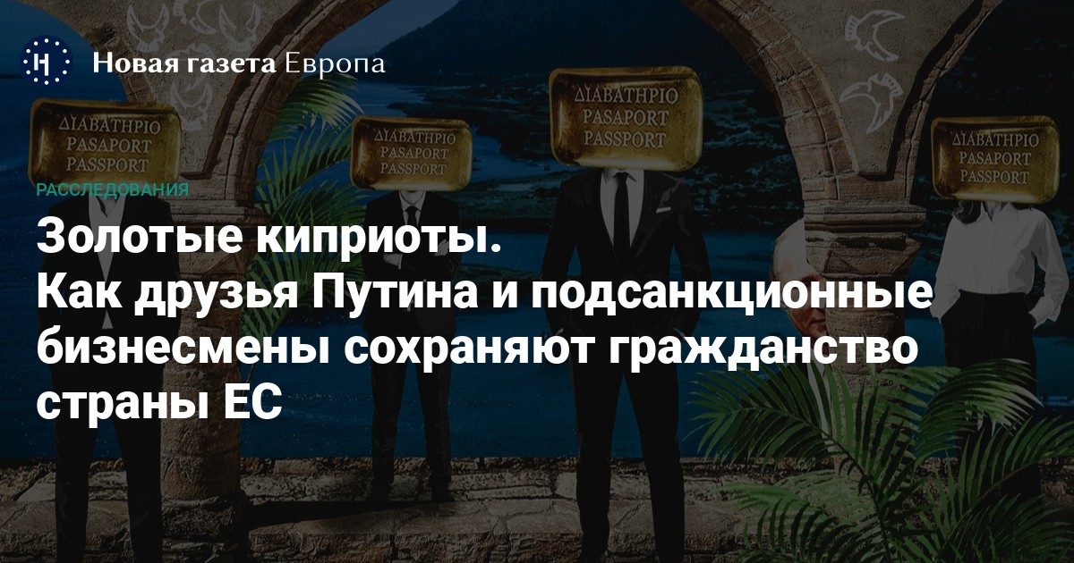 На прошлой неделе стало известно, что власти Кипра решили отозвать паспорта у 77 человек, которые получили их в ходе программы «гражданство за инвестиции». Большая часть этих людей — из России. Процесс пересмотра программы «золотых паспортов» идет на Кипре под давлением Евросоюза уже давно, но непублично. Так же непублично, как до этого был устроен процесс выдачи этих паспортов. «Новая газета Европа» изучила имена тех, кто уже привлек внимание кипрских властей, и называет еще несколько имен граждан России, которые получили кипрские паспорта за время программы, но пока не вызвали вопросов у властей Евросоюза. По крайней мере, об этом не известно публично. Все эти люди — политически значимые лица, к которым должны были отнестись с особой внимательностью при рассмотрении заявок на гражданство, особенно в том, что касается происхождения их средств.