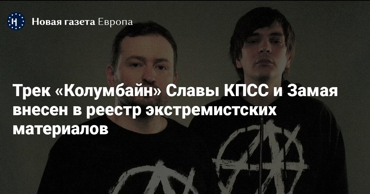 Минюст России внес в реестр экстремистских материалов трек «Колумбайн» Славы КПСС и Замая.