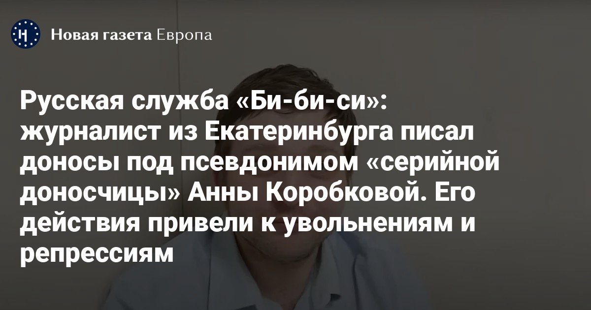 Русская служба «Би-би-си»: журналист из Екатеринбурга писал доносы под псевдонимом «серийной доносчицы» Анны Коробковой. Его действия привели к увольнениям и репрессиям