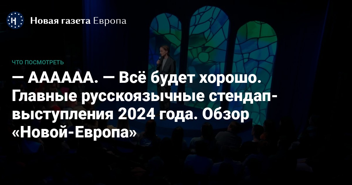 «Новая газета Европа» посмотрела большинство сольных стендап-концертов на русском языке, вышедших в 2024 году, и составила список из девяти наиболее важных выступлений. Эта подборка субъективна, а ее участники расположены в случайном порядке.
