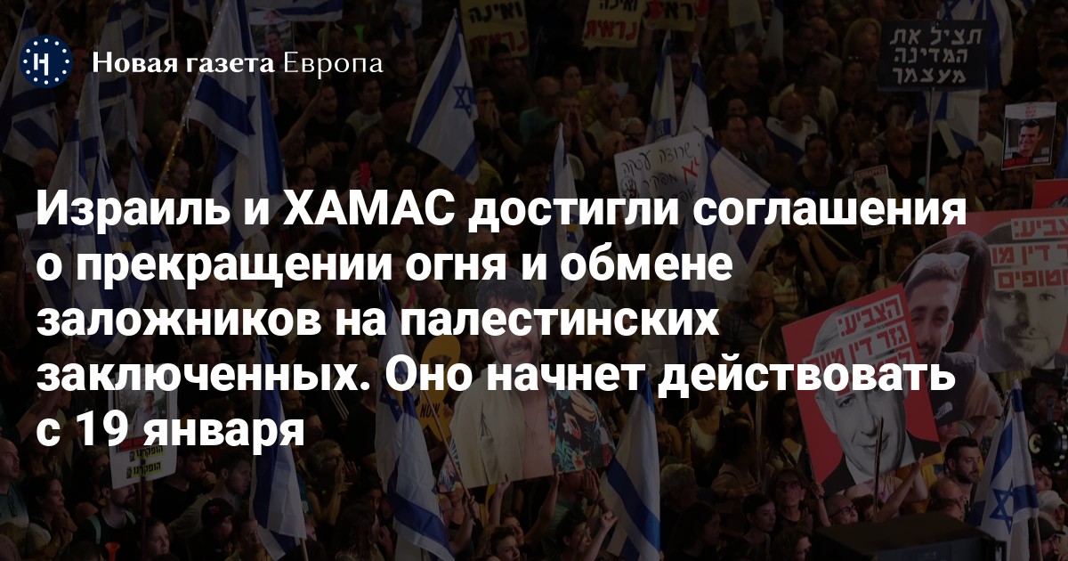 Израиль и ХАМАС достигли соглашения о прекращении огня и обмене заложников на палестинских заключенных. Оно начнет действовать с 19 января
