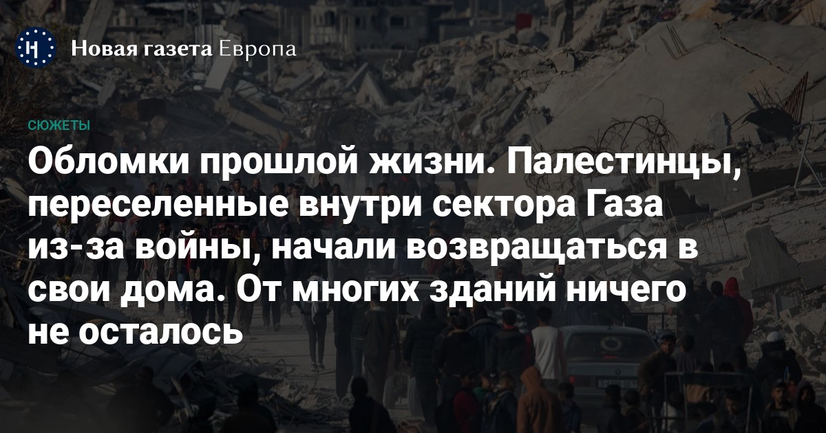 Агентство Reuters написало 21 января 2025-го, спустя несколько дней после вступления в силу сделки о прекращении огня в регионе, как палестинцы пешком или на повозках начали возвращаться на прежние места проживания. По информации журналистов, некоторые жители даже не смогли узнать свои дома и предпочли вернуться в палатки, где они укрывались последние несколько месяцев. Другие начали расчищать завалы.