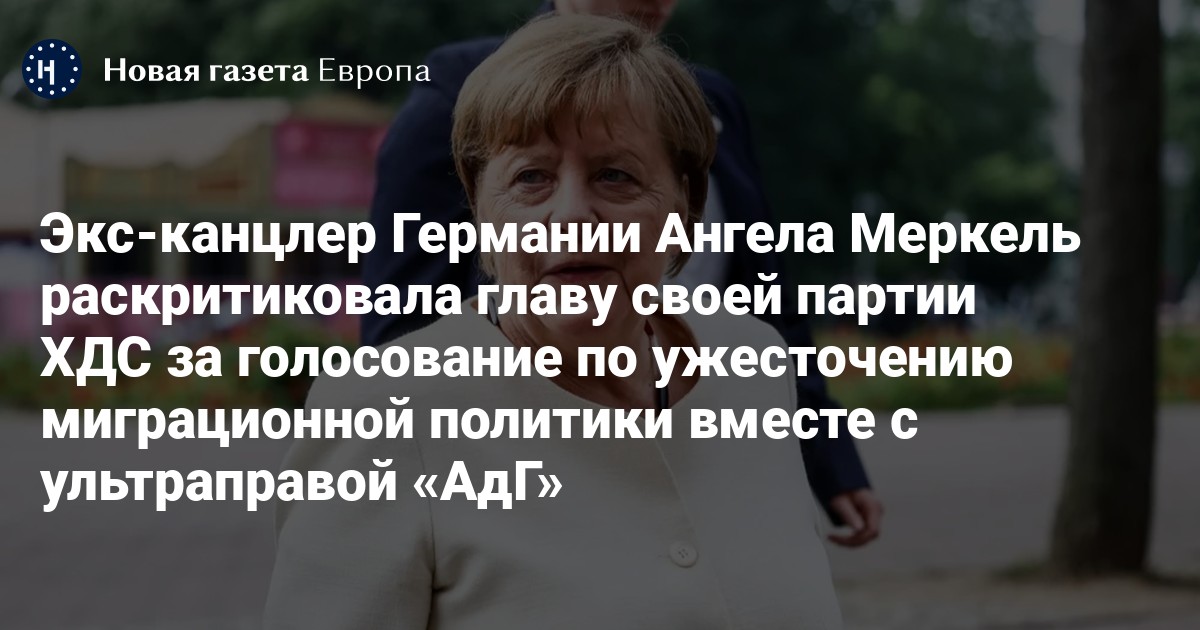 Экс-канцлер Германии Ангела Меркель раскритиковала главу своей партии ХДС за голосование по ужесточению миграционной политики вместе с ультраправой «АдГ»