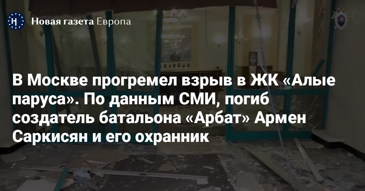 В Москве прогремел взрыв в ЖК «Алые паруса». По данным СМИ, погиб создатель батальона «Арбат» Армен Саркисян и его охранник