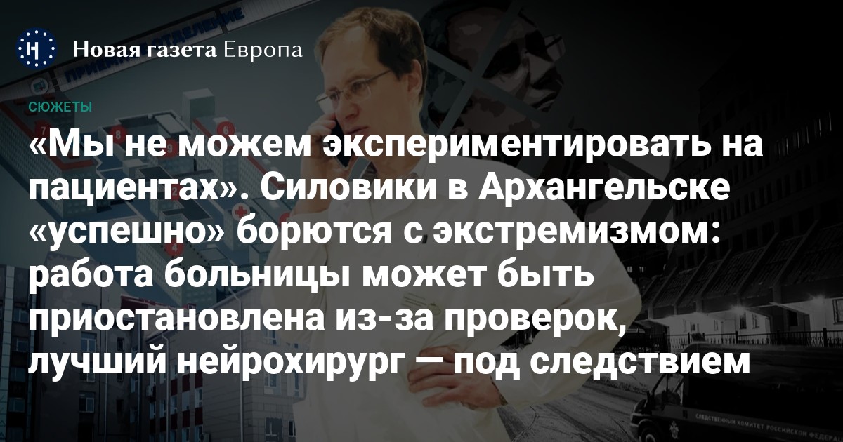 Силовики в Архангельске «успешно» борются с экстремизмом: работа больницы может быть приостановлена из-за проверок, лучший нейрохирург — под следствием