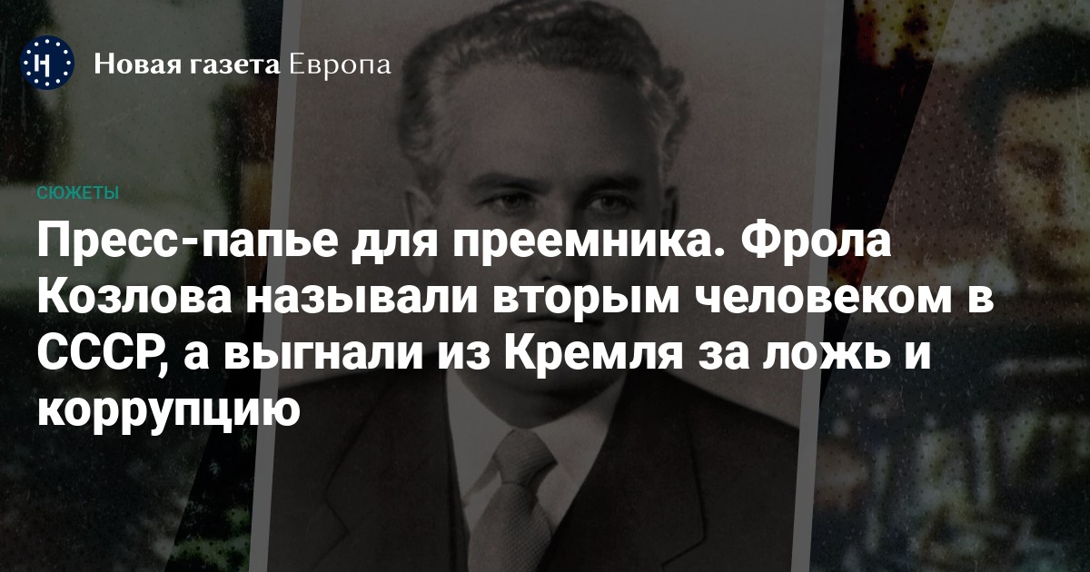 60 лет назад умер Фрол Козлов. В начале 60-х годов он был вторым человеком в СССР и основным претендентом на место Генерального секретаря КПСС, которого готовил сам Никита Хрущев. Сегодня его имя не сразу вспомнят даже историки. Карьера Козлова закончилась так же резко, как и началась. Когда его главный покровитель узнал, что Козлов замешан в коррупции, он запустил в Козлова пресс-папье и выгнал из Кремля, после чего еще недавно всесильного функционера разбил инсульт, от которого он и умер 30 января 1965 года.