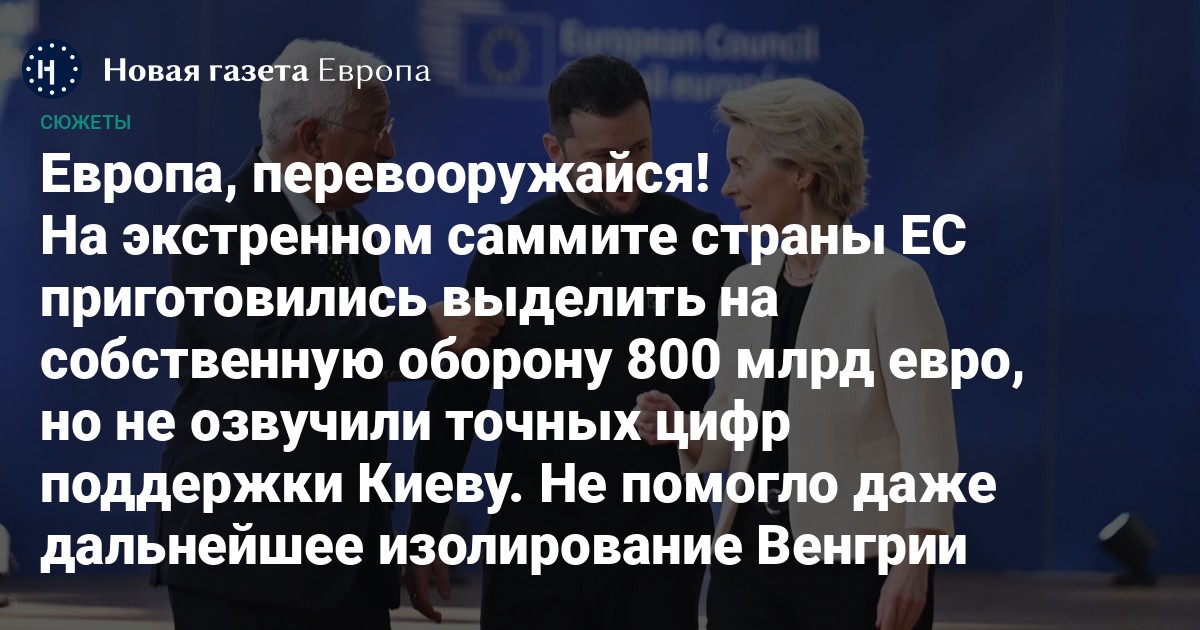 На экстренном саммите страны ЕС приготовились выделить на оборону 800 млрд евро, но не озвучили точных цифр поддержки Киеву. Не помогло даже дальнейшее изолирование Венгрии