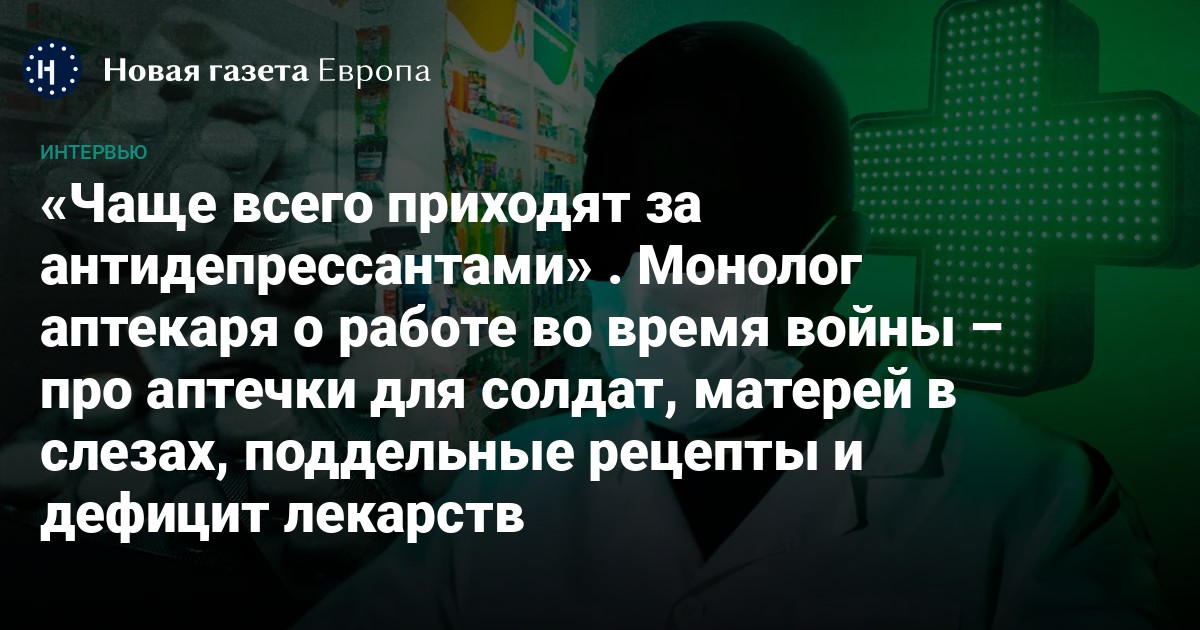Как война и репрессии меняют российское общество? Продолжаем разговаривать с россиянами разных профессий. Владимир работает в одной из российских аптек. В интервью «Новой газете Европа» он рассказал о том, с какими запросами россияне стали приходить к фармацевтам после начала войны, как зарабатывают аптеки сегодня, почему никто не хочет идти туда работать, и как бои на фронте влияют на доступность лекарств.