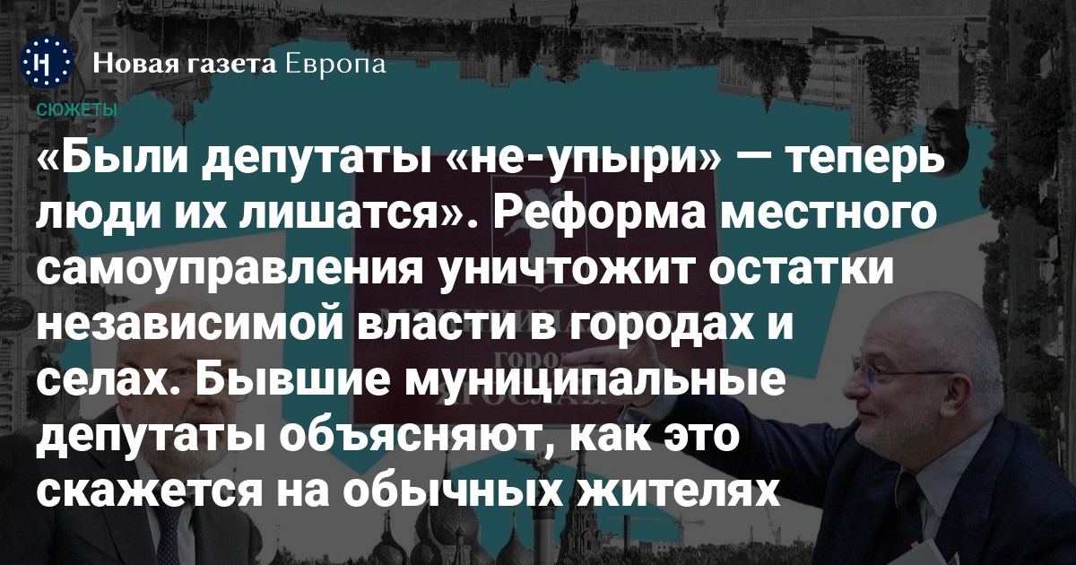 Реформа местного самоуправления уничтожит остатки независимой власти в городах и селах. Бывшие муниципальные депутаты объясняют, как это скажется на обычных жителях