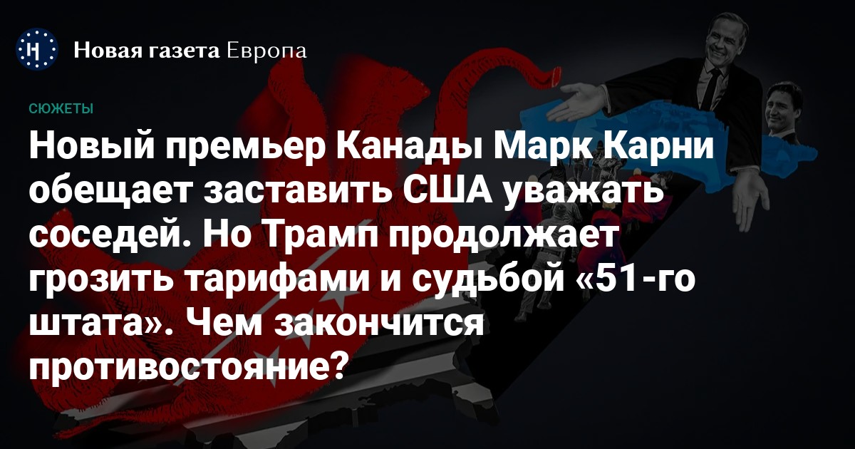 Им 9 марта стал Марк Карни. Перед ним теперь стоит сразу несколько непростых задач: победить на досрочных выборах, о проведении которых, как ожидается, он объявит в ближайшие дни, и эффективно противостоять Дональду Трампу.