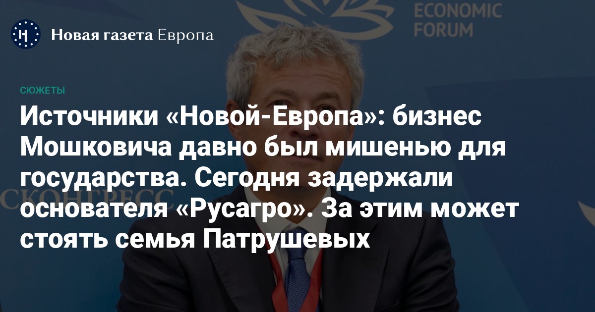 Уголовное дело в отношении миллиардера Вадима Мошковича может стать первым случаем конфискации активов у предпринимателя, который добровольно перевел бизнес в Россию. За атакой на его агрохолдинг «Русагро» может стоять семья Патрушевых, которая прибирает к рукам крупные активы в продовольственном секторе и сельском хозяйстве. Кроме того, Мошковича могли подвести его амбиции выйти на мировой рынок зернового трейдинга.