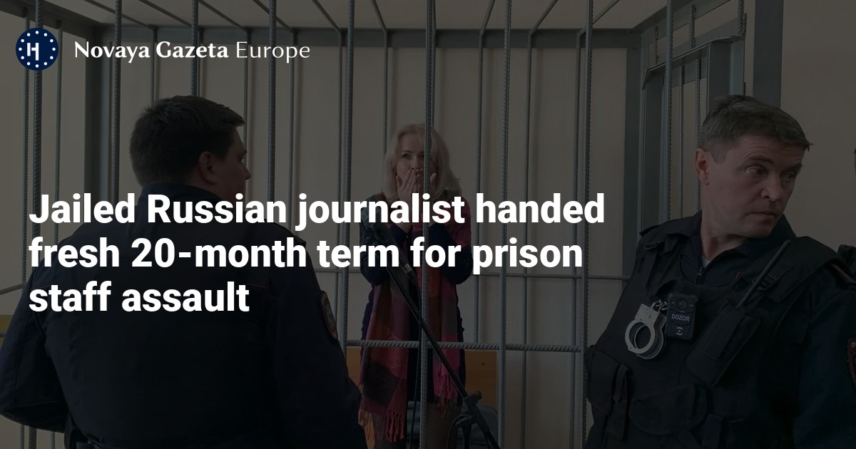 Russian journalist Maria Ponomarenko, who is currently serving a six-year sentence for “spreading false information” about the Russian military, has been given an additional term of one year and 10 months after being found guilty of assaulting prison staff, independent media outlet RusNews reported on Thursday.