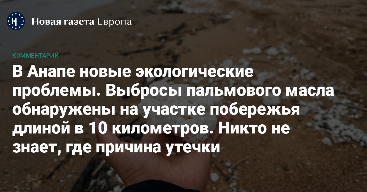 5 и 6 апреля у побережья Анапы — между станицей Благовещенской и поселком Волна — обнаружили выбросы пальмового масла. Его заметили добровольцы, которые вот уже несколько месяцев собирают мазут после крушения в Черном море двух танкеров в декабре 2024 года. Волонтеры собрали пробы белого органического вещества и передали их на экспертизу в лабораторию в Краснодаре. Природоохранная прокуратура начала проверку. Пока власти не могут дать никакой информации о том, кто может быть виновен в новой аварии.