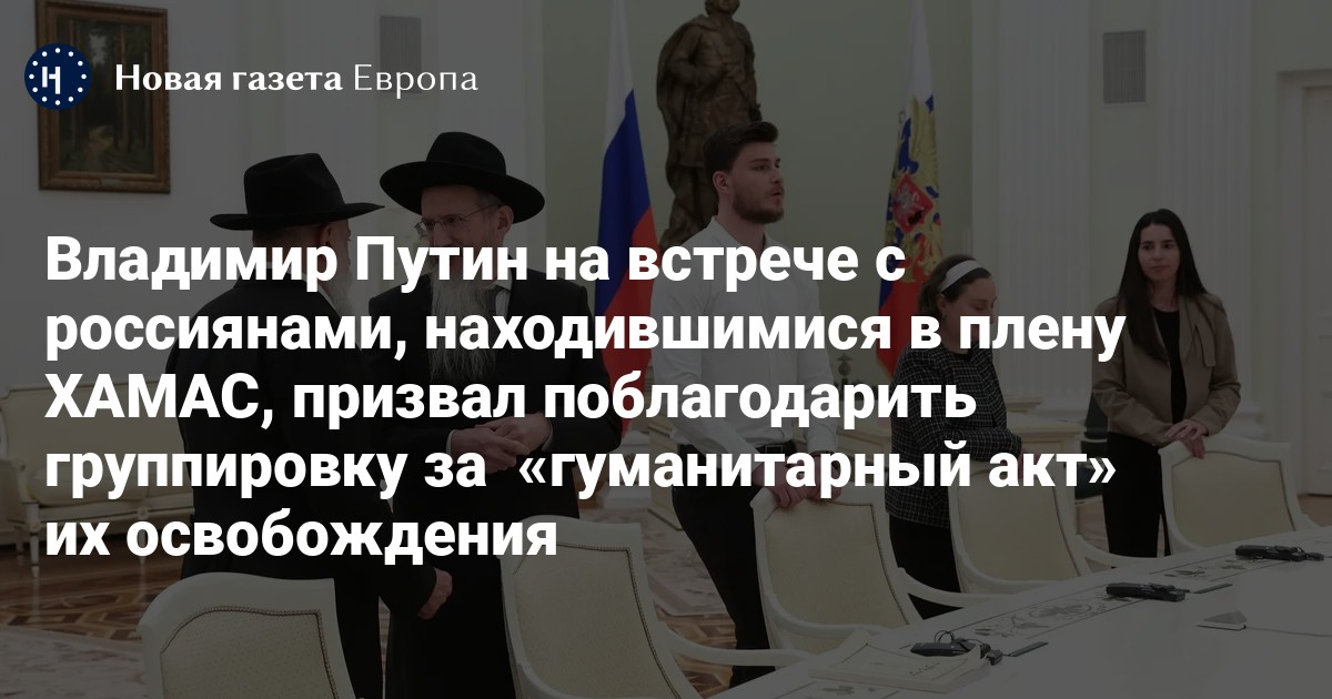 Владимир Путин на встрече с россиянами, находившимися в плену ХАМАС, призвал поблагодарить группировку за «гуманитарный акт» их освобождения