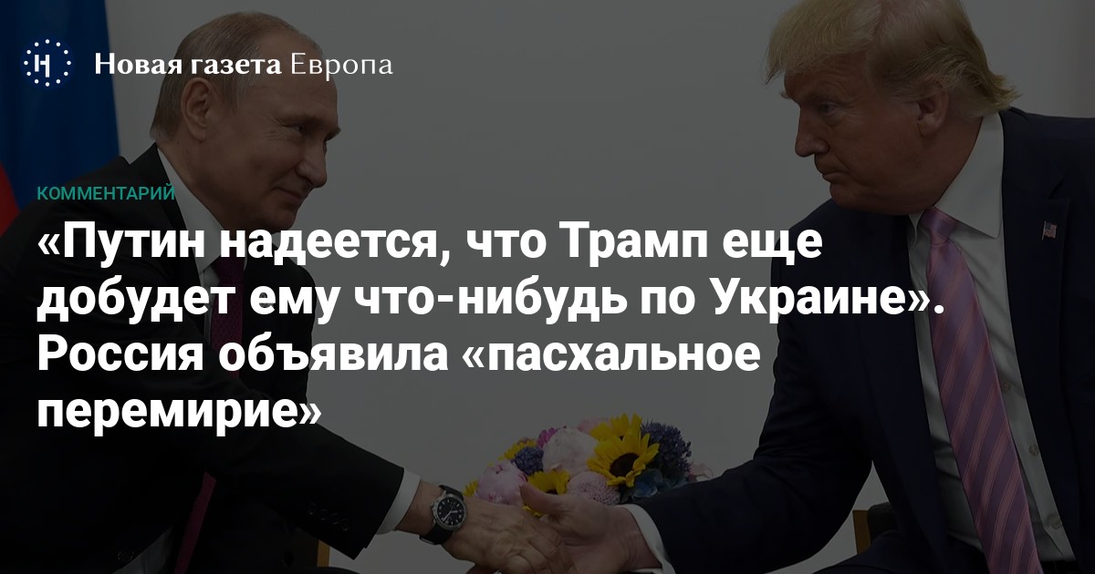 Политологи, опрошенные «Новой Европой», сходятся в том, что заявление Путина о «пасхальном перемирии» адресовано не столько Киеву, сколько Вашингтону — и направлено на то, чтобы расположить к себе Трампа.